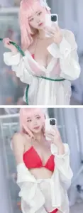 노출 수위 높은 나리땽 코스프레 흰 끈비키니 가슴골 엉벅지