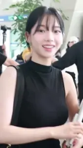 [르세라핌] 마스크 쓴 르세라핌 김채원 검정 나시 공항패션