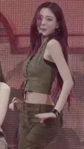 국방색 스트랩 나시 잘록한 허리배꼽 항아리골반 뒤태 있지 유나