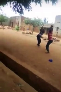 (SOUND)서로 긴 막대 들고 싸우는 남자들.mp4