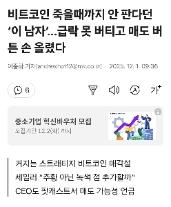 비트코인 죽을때까지 안 판다던 ‘이 남자’.급락 못 버티고 매도 버튼 손 올렸다