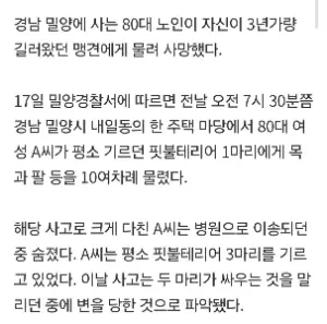 밀양서 80대 노인 필불테리어의 물려 사망