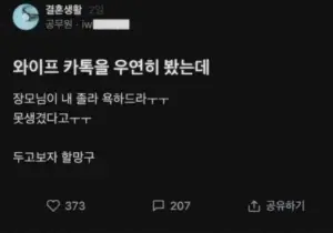 와이프 카톡 보고 눈물 흘린 남편