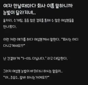 여자 만날때마다 회사 이름 말하니까 눈빛이 달라지네