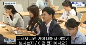 브리핑 후 나가는 대통령 대변인에게 “”””재밌어진다”””” 말한 남기