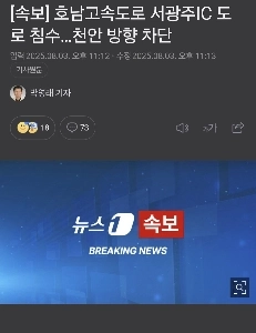 [속보] 호남고속도로 서광주IC 도로 침수…천안 방향 차단