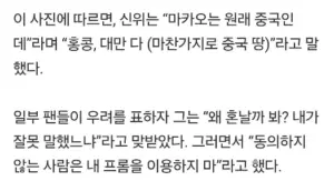 트리플에스 신위 “”””하나의 중국 동의못하면 나가””””