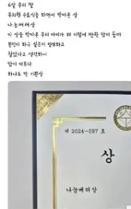 6살 딸이 받아온 상장이 마음 아픈 엄마