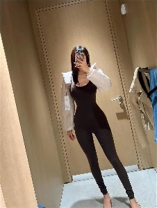 검정 끈나시 + 레깅스 입고 머리 올리는 그릴래영 H컵 가슴골