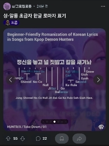 로마자로 케데헌 노래 배우는 레딧