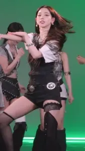바로 아래에서 본 검정 레이스 핫팬츠 허벅지 트와이스 지효