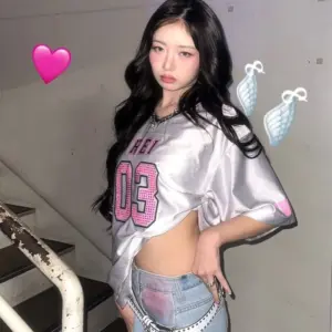 머리에 빨간 꽃 단 아이브 레이.하늘색 크롭티 은근한 바운스