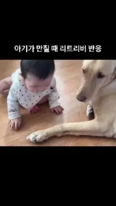 (SOUND)아기가 만질때 리트리버 반응