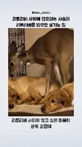 (SOUND)리트리버 강아지 사이에 앉으려는 사슴이 리트리버 밟음.mp4
