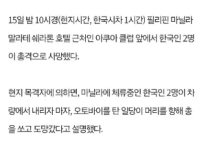 필리핀 마닐라에서 한국인 2명 살해당함