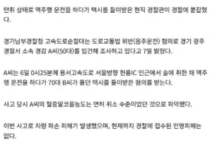 [속보] 현직 경찰관, 만취해 고속도로 역주행
