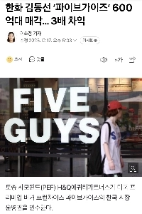 한화 김동선 ‘파이브가이즈’ 600억대 매각… 3배 차익