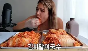 외국유튜버의 김치말이 국수 먹방