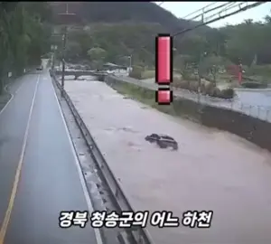 폭우로 하천에 차량이 빠져 고립된 모녀.