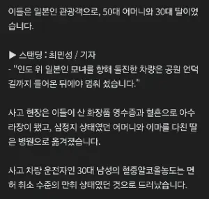 ‘효도관광’ 한국 왔는데…음주운전 차량에 참변당한 일본인 모녀