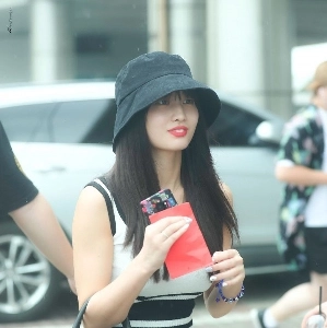 후드 속 검정 나시 시크한 트와이스 모모 공항패션