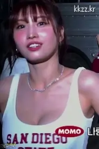 회색 끈나시 입고 꿀렁이는 트와이스 묵직 투탑 지효 모모