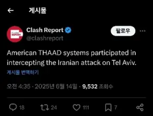 이란 미사일 요격에 미국 사드가 도와준거 확인된듯?
