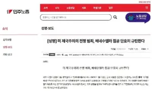 민주노총 “”미 제국주의의 전쟁범죄, 베네수엘라 침공 단호히 규탄한다””
