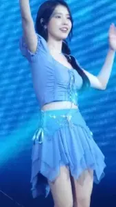 봉긋한 파란색 스트랩 상의.미세하지만 요망한 바운스 아이유