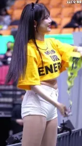 (SOUND)김한나 치어리더 노란 크롭티 흰 브라탑 반바지