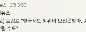[속보] 트럼프 “”””한국서도 방위비 보전못받아…무역협상 일부될 수도””””