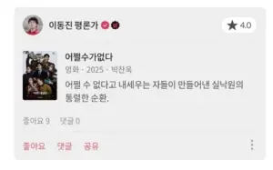 이동진 평론가 ”어쩔수가 없다” 별점