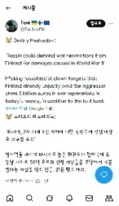 러시아 메드베데프핀란드에 전쟁 보상금 요구할것