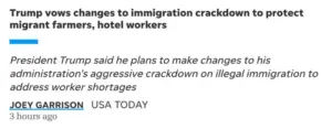 트럼프 “”””불체자 단속에서 농부들과 호텔 종사자들은 보호하도록 정책적 변화 줄 것””””