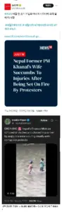 속보) 네팔 전 총리 영부인 시위대에 의해 불에 타 사망