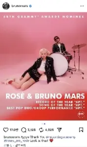 로제의 신곡에 긁힌 브루노 마스