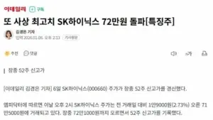 SK하이닉스, 장중 70만원 돌파해 ”사상 최고가”