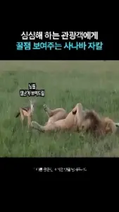 사자한테 물려서 놀라는 처자