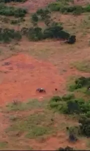 코끼리 코뿔소 야스보고 놀란 사자.