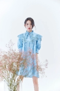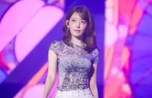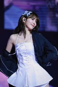 토끼 머리띠 쓴 르세라핌 사쿠라.하늘색 홀터넥 나시 묵직한 가슴