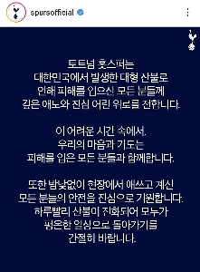 [토트넘인스타] 대한민국 산불피해 관련 업로드.jpg