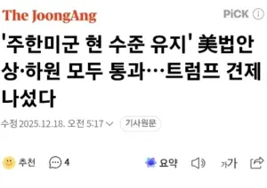 ”주한미군 현 수준 유지” 미 법안 상하원 모두 통과
