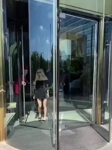 회전문 통과하는 서양 누나