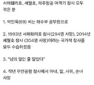 서해페리, 세월호, 제주항공사태를 다 겪으신 분