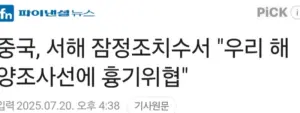 중국, 서해 잠정조치수서 “”””우리 해양조사선에 흉기위협””””
