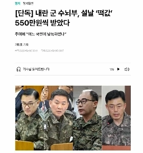 내란 군 수뇌부 설날 떡값 550만원씩 받았다