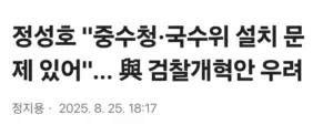 정성호 장관 ”중수청·국수위 설치 문제 있어”. 與 검찰개혁안 우려