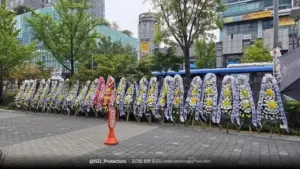 패러블 팬덤 총공팀 화환 설치, 점자 블록 가림 논란