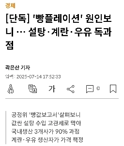 ”빵플레이션” 원인보니 … 설탕·계란·우유 독과점
