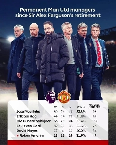 [PL] 퍼거슨 이후 맨유 정식감독들 리그 성적